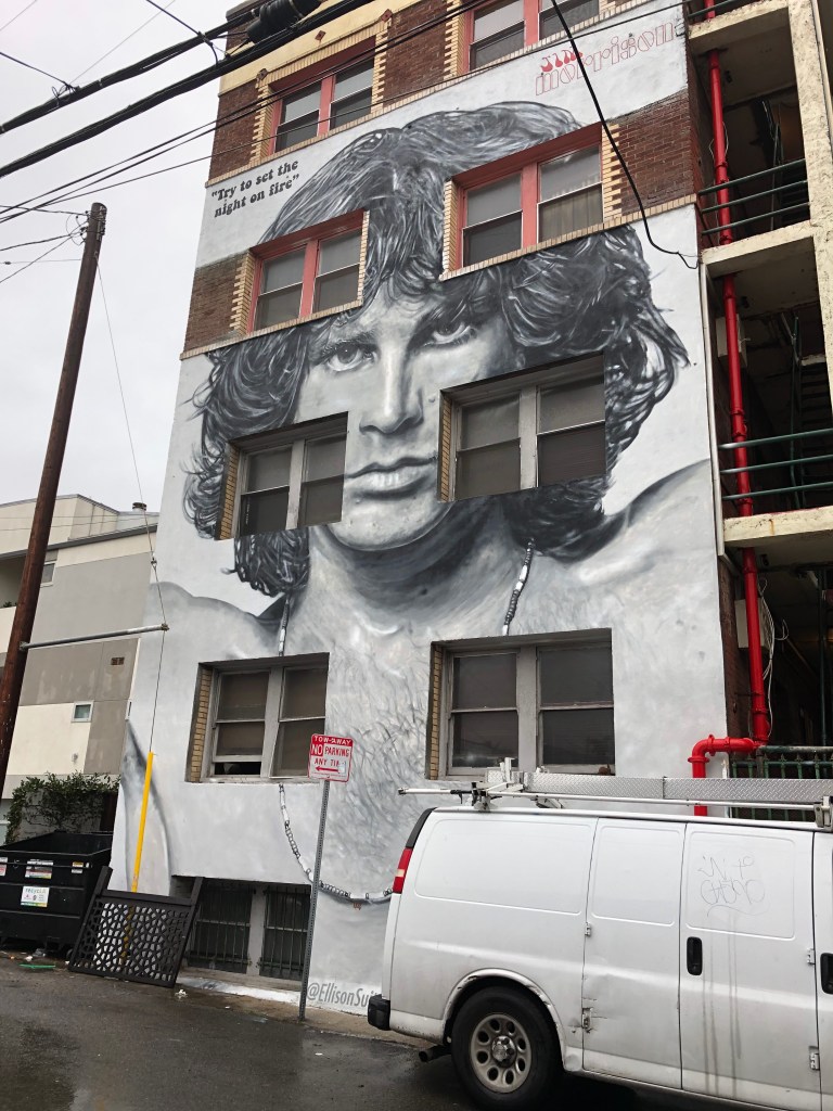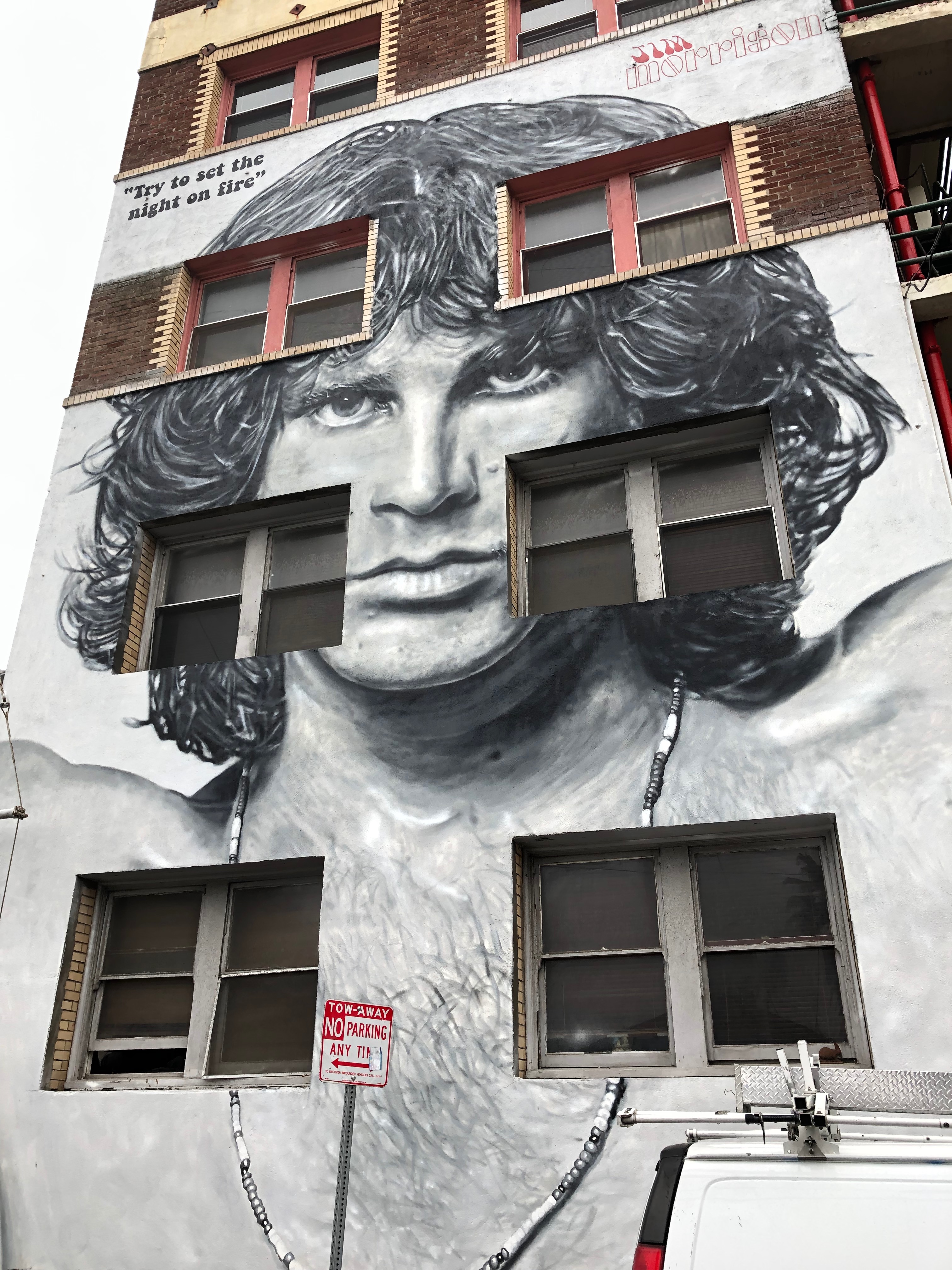 Amazing mural of Jim Morrison – Try to set the night on fire.