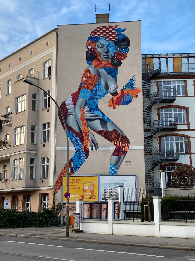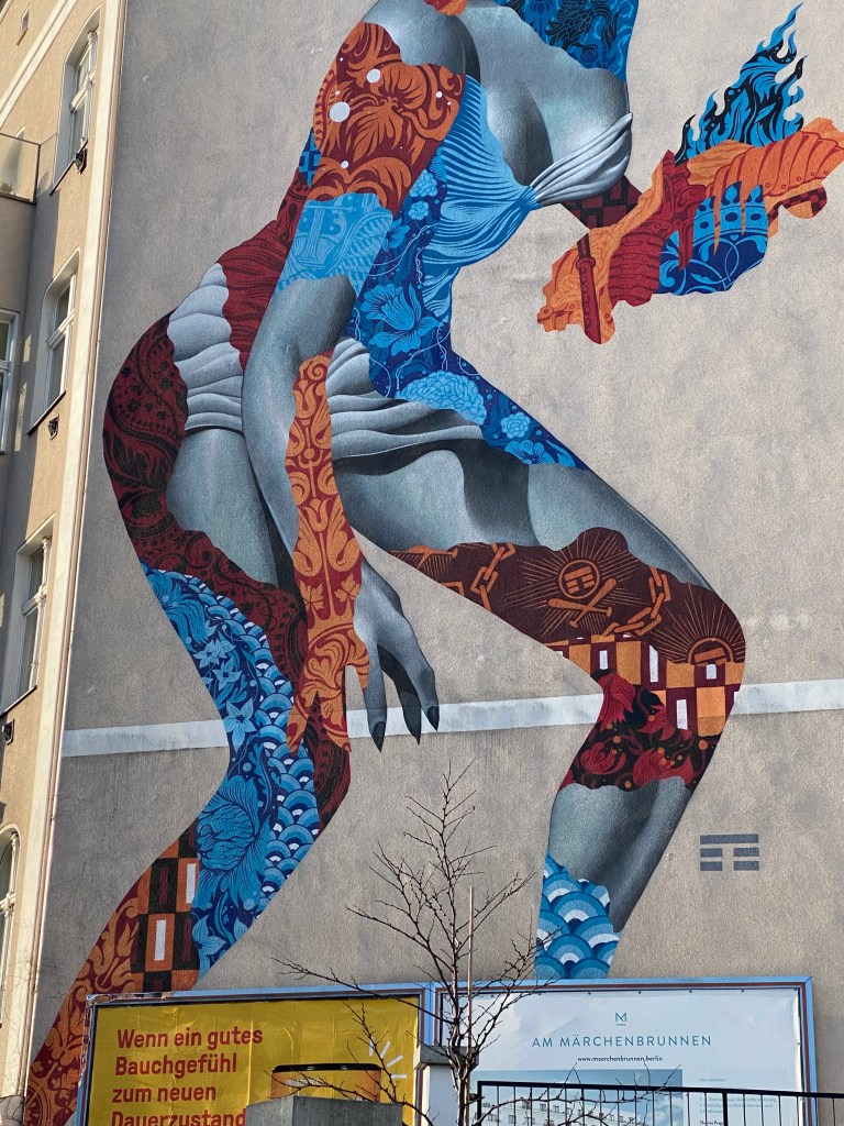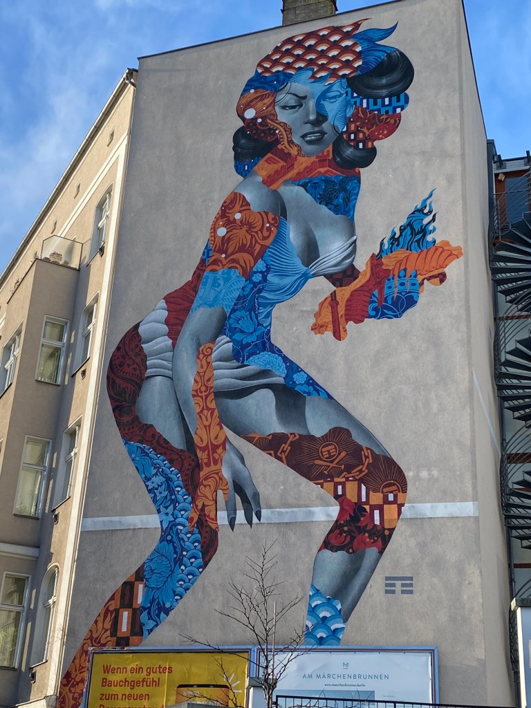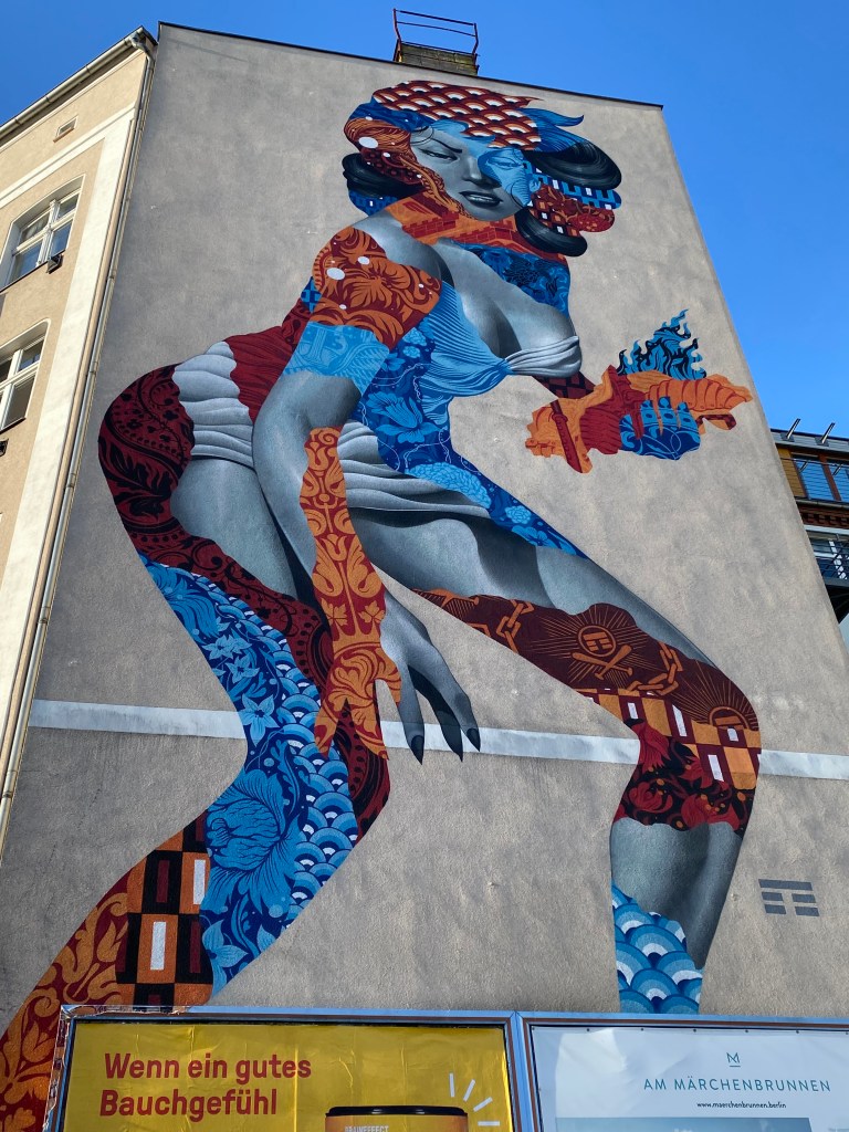 The L.A. street artist Tristan Eaton created this massive and impressive 5-story painting in Prenzlauer Berg, Berlin. It is his interpretation of the iconic movie posters of the 1950’s science fiction movie ‘Attack of the 50 Foot Woman’.