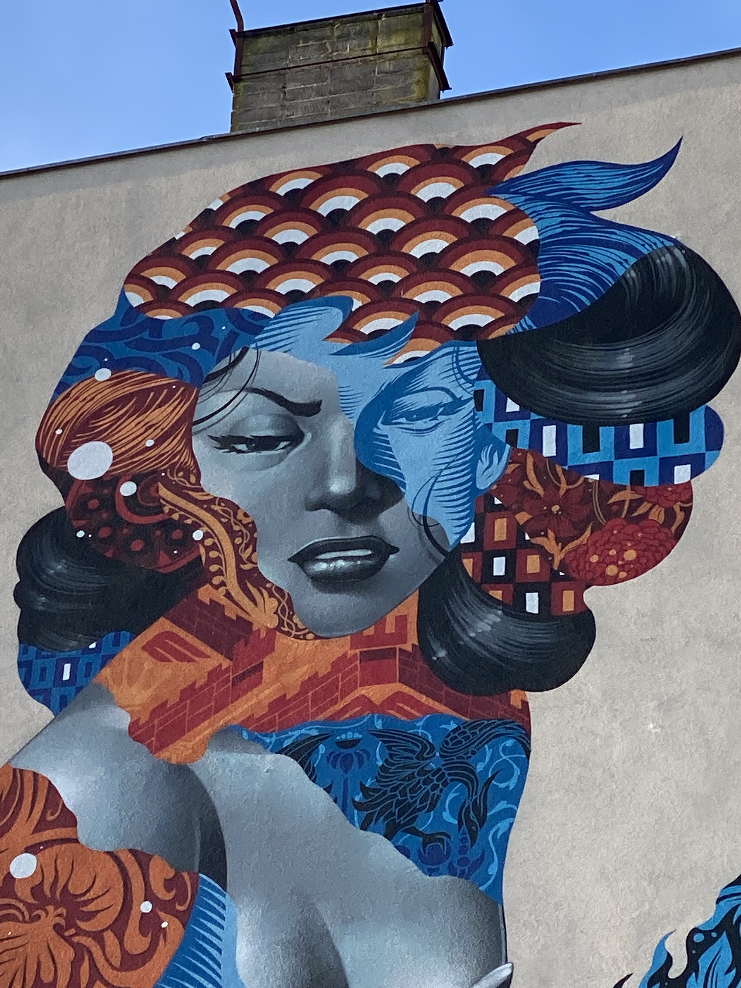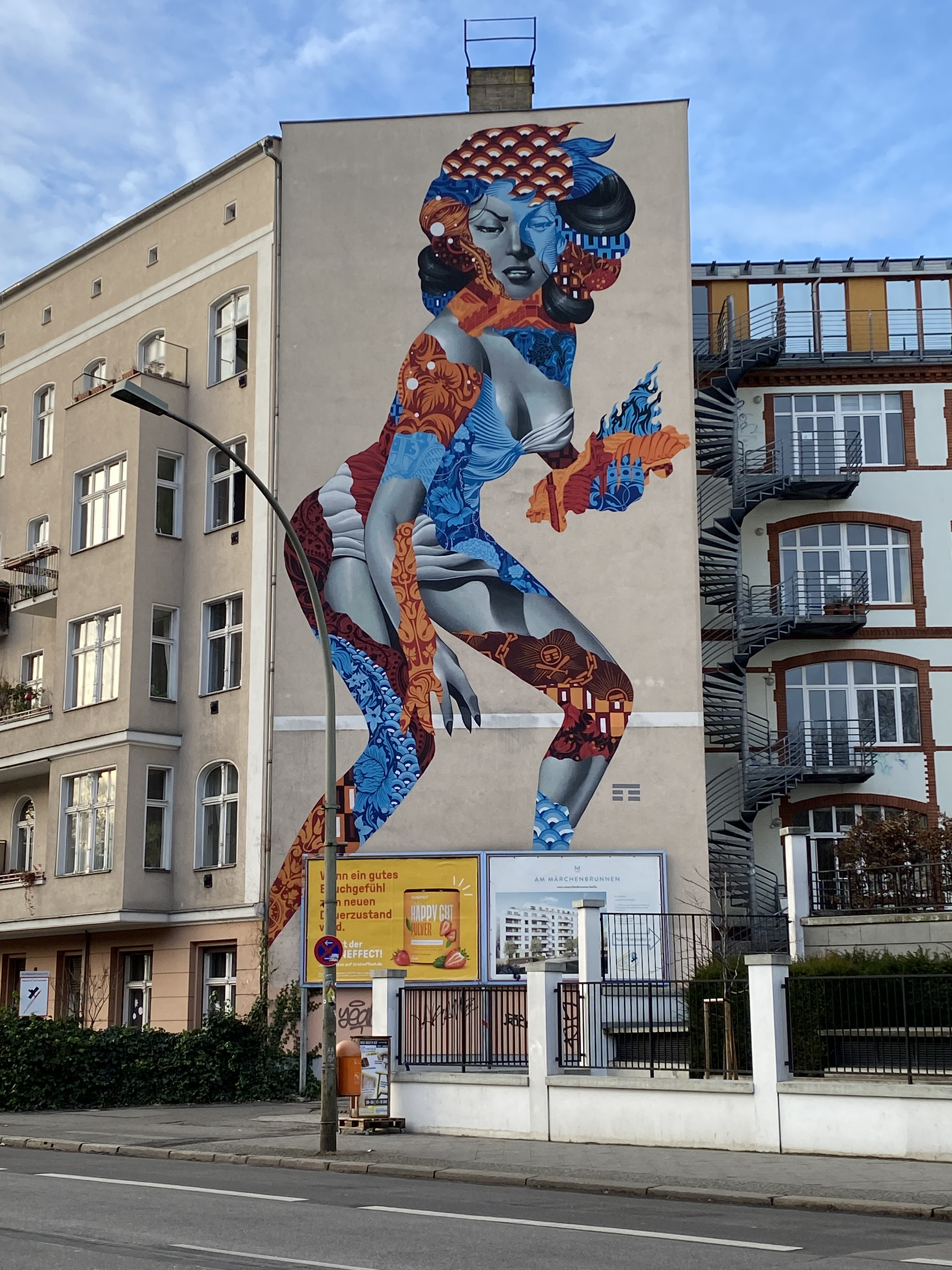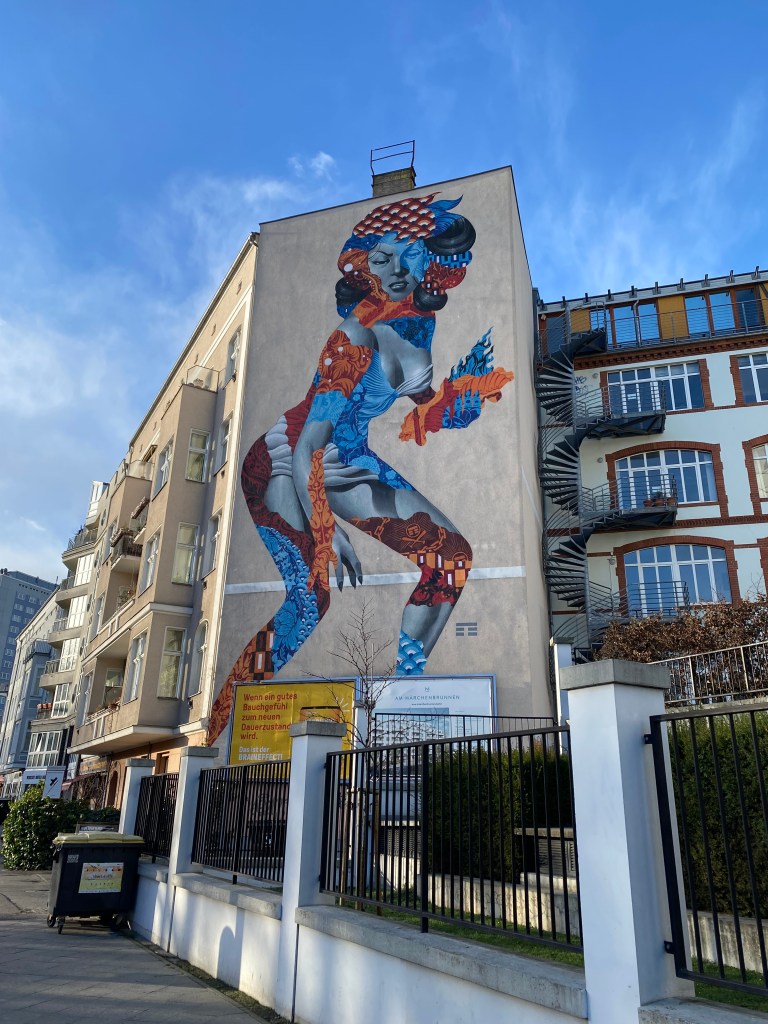 The L.A. street artist Tristan Eaton created this massive and impressive 5-story painting in Prenzlauer Berg, Berlin. It is his interpretation of the iconic movie posters of the 1950’s science fiction movie ‘Attack of the 50 Foot Woman’.