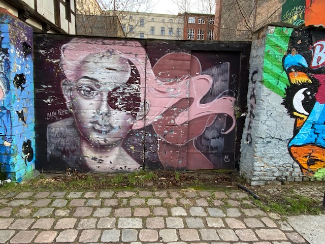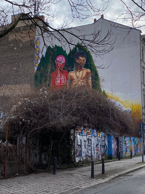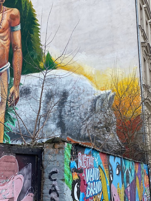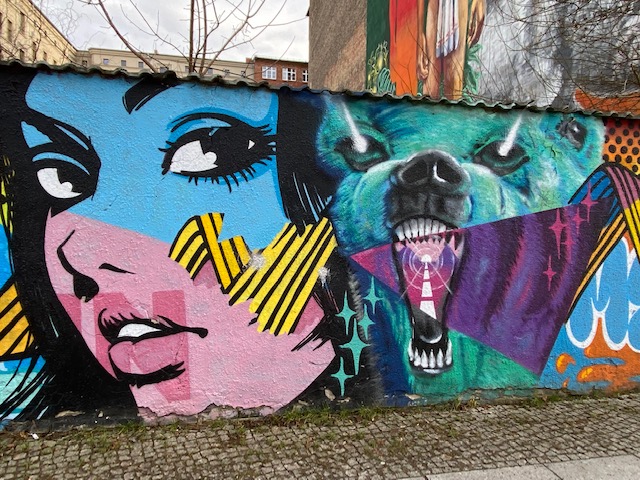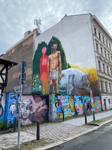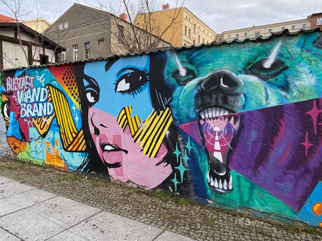 Watch out for the big wolf at Templiner Street in Prenzlauer Berg, it is impressive, especially in combination with the mural of the indigenous boy next to it.