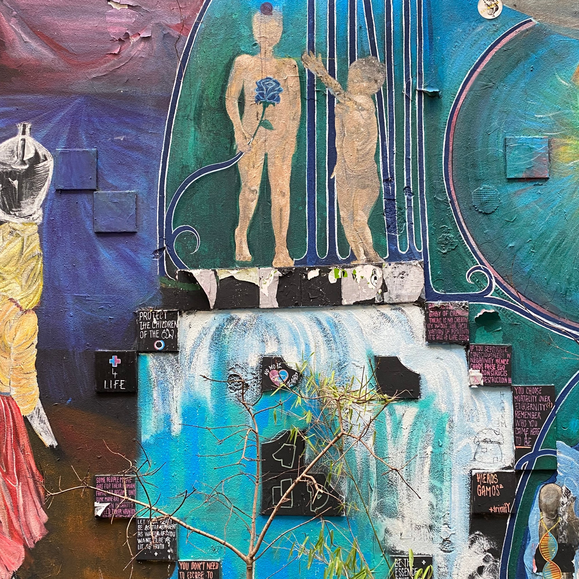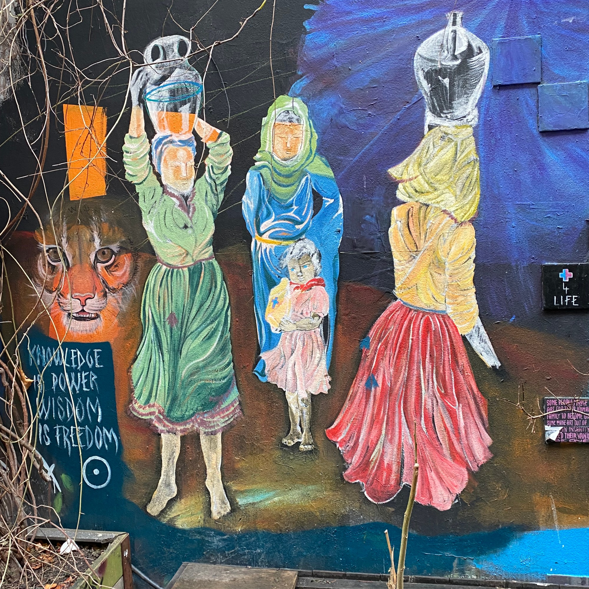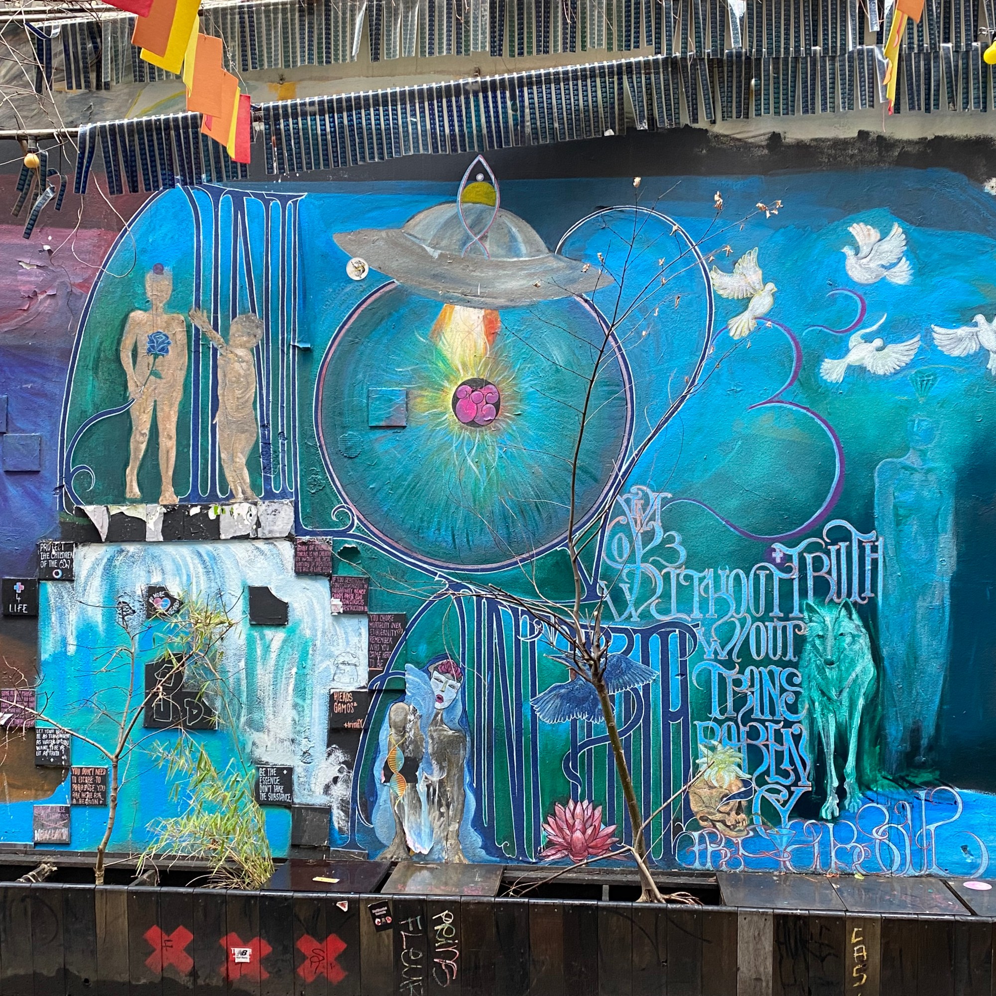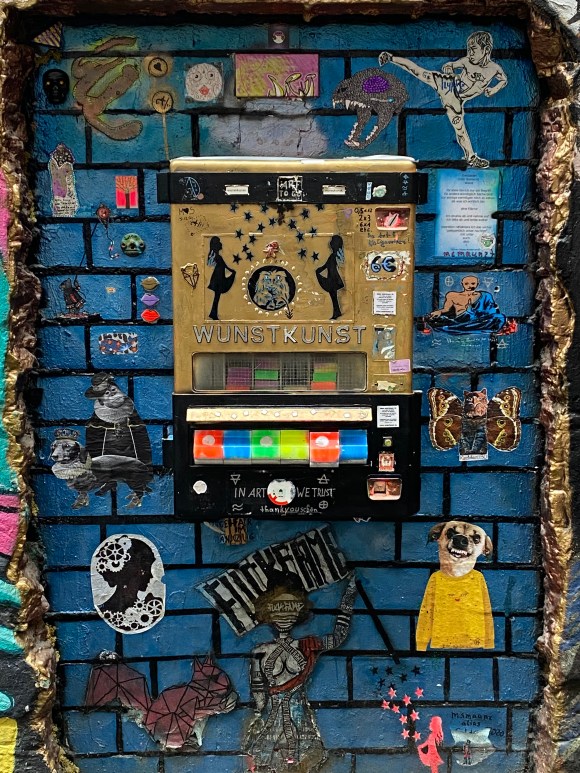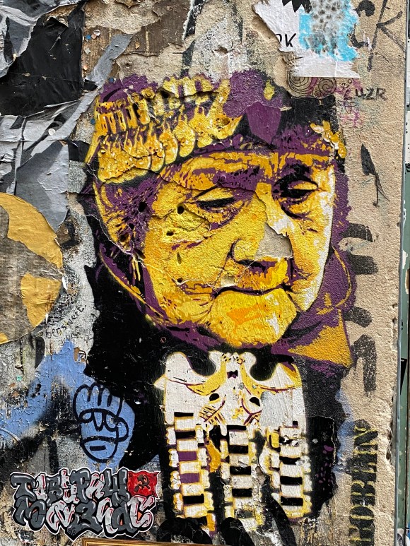 Once you enter the alley, you are being overwhelmed by all the street art, murals, paintings… It is quite the contrast to the very expensive shops and clean walls that can be found in the surrounding.