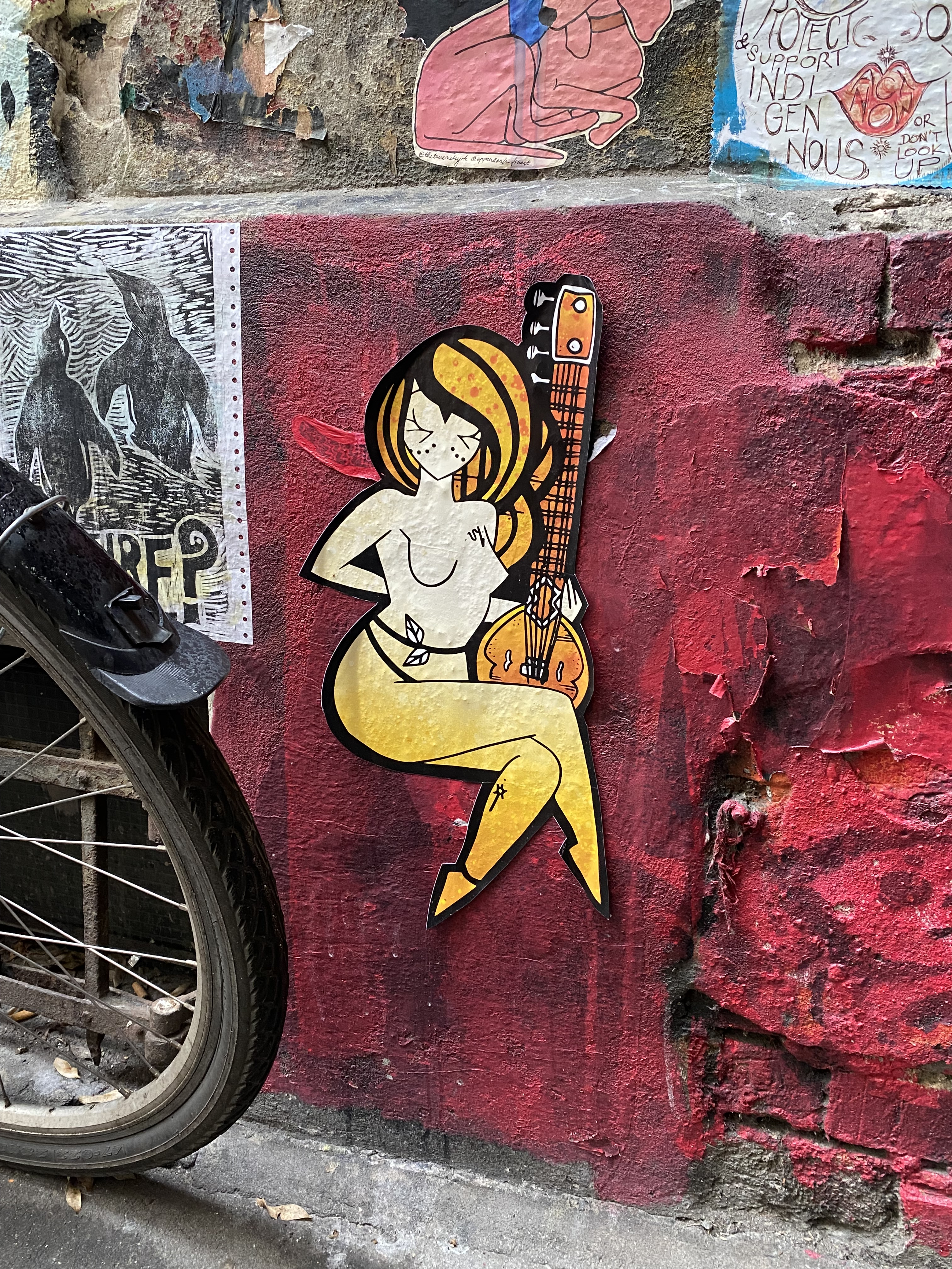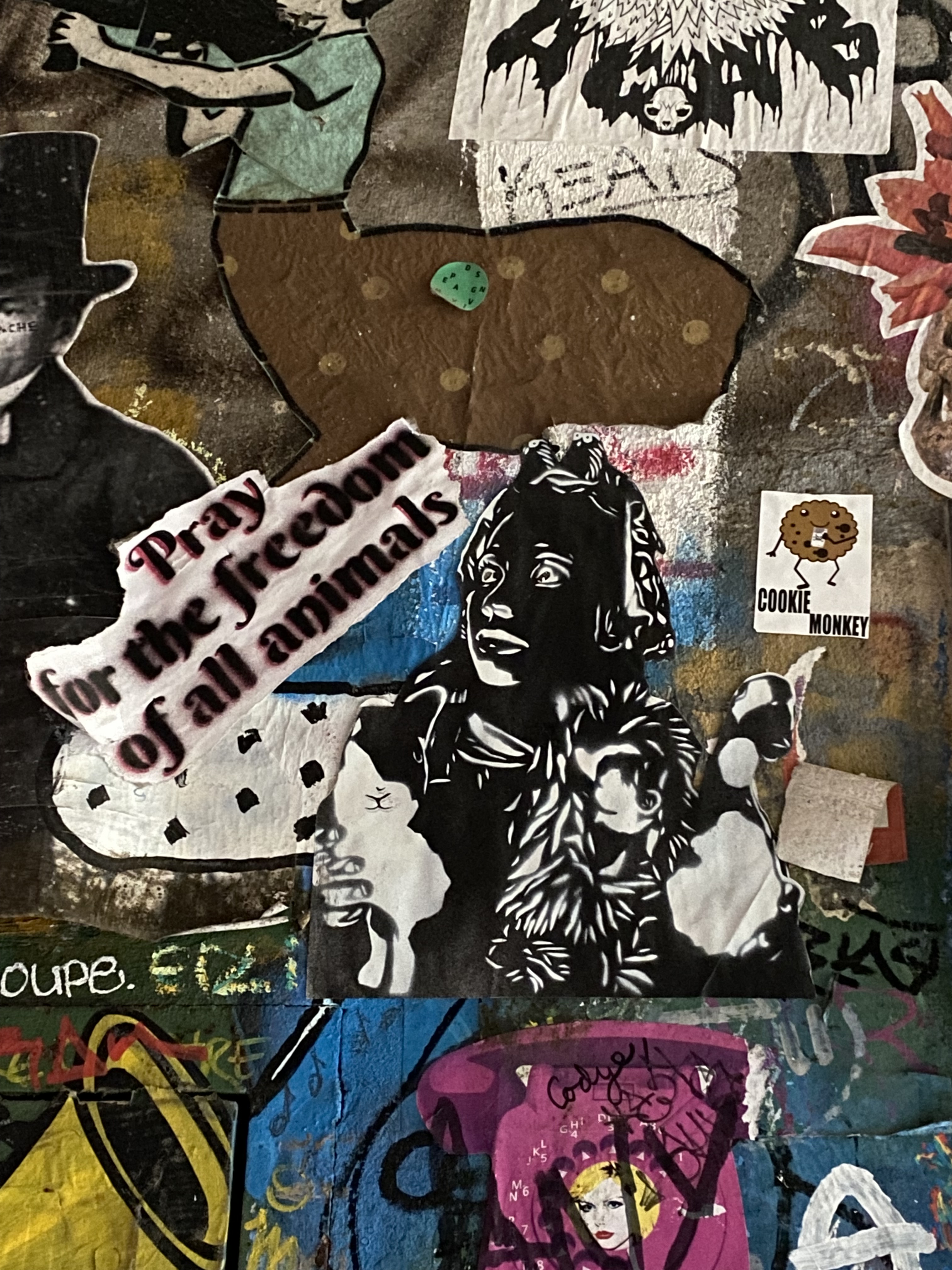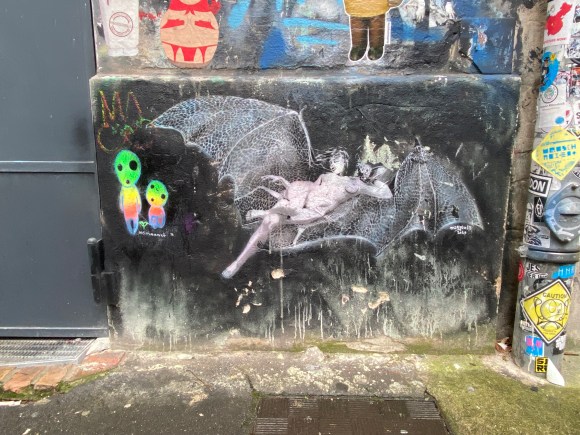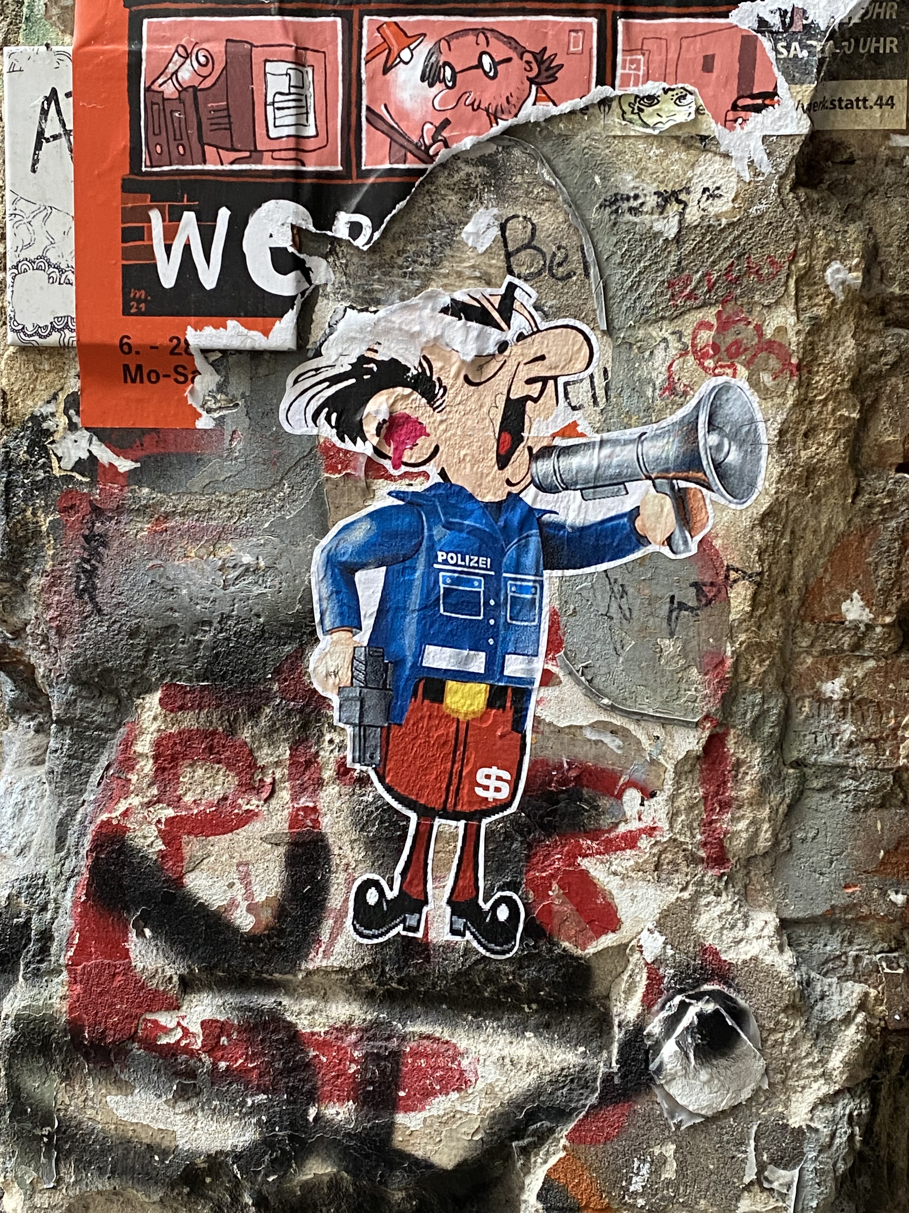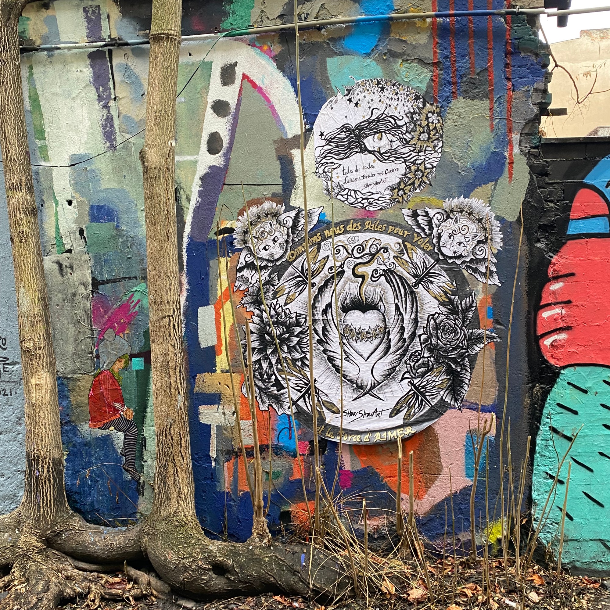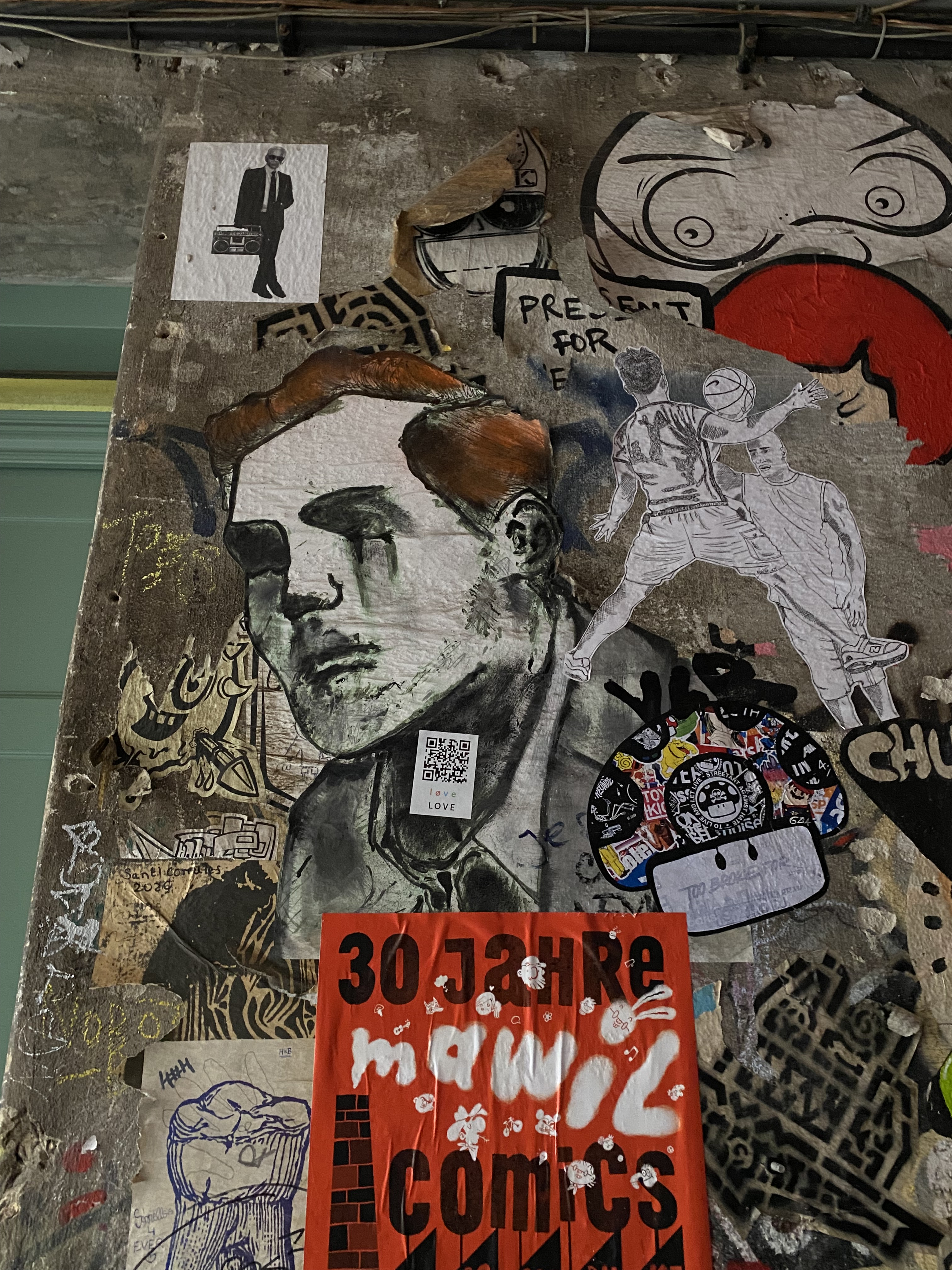 The large walls feature artwork from street artists from all over the world. Works include big paintings, stickers, Paste-Ups, Cut-Outs, stencils, mosaics, installations, guerilla knittings… At the moment you can find works there from international street artists such as: James Cobran aka Jimmy C., Alice Pasquini aka AliCé, Caro Pepe, Otto Schade, The Weird, Reka, Descreet, Alias, El Bocho, Sr. Papá Chango, Plotbon KEN, Tona, Patera, Emess, Herr von Bias (HRvB), Prost, Joy Foc, Robi the Dog, Various & Gould, Soon, Mymo, Rallitox, Lake Oner…
