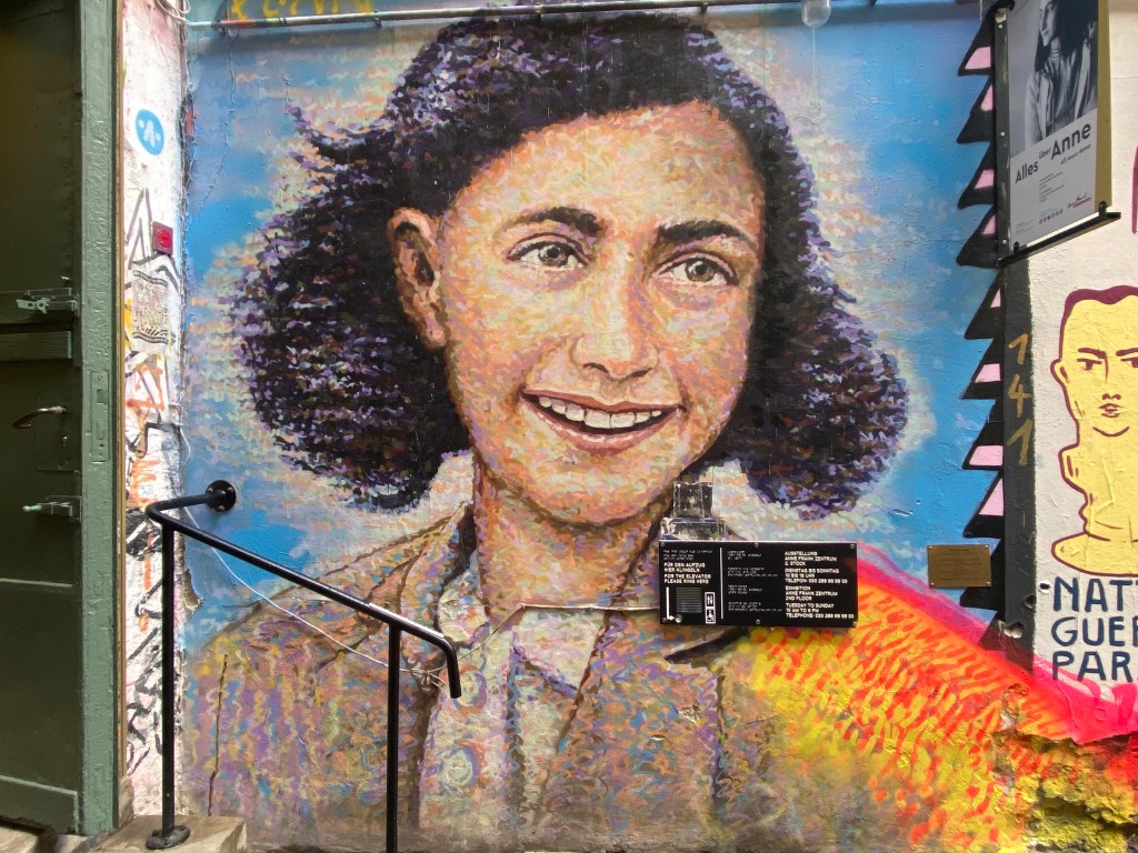 In cooperation with, Street Art Berlin and Street Art London, Jimmy C. painted a mural of Anne Frank right next to the extrance of the Zentrum.