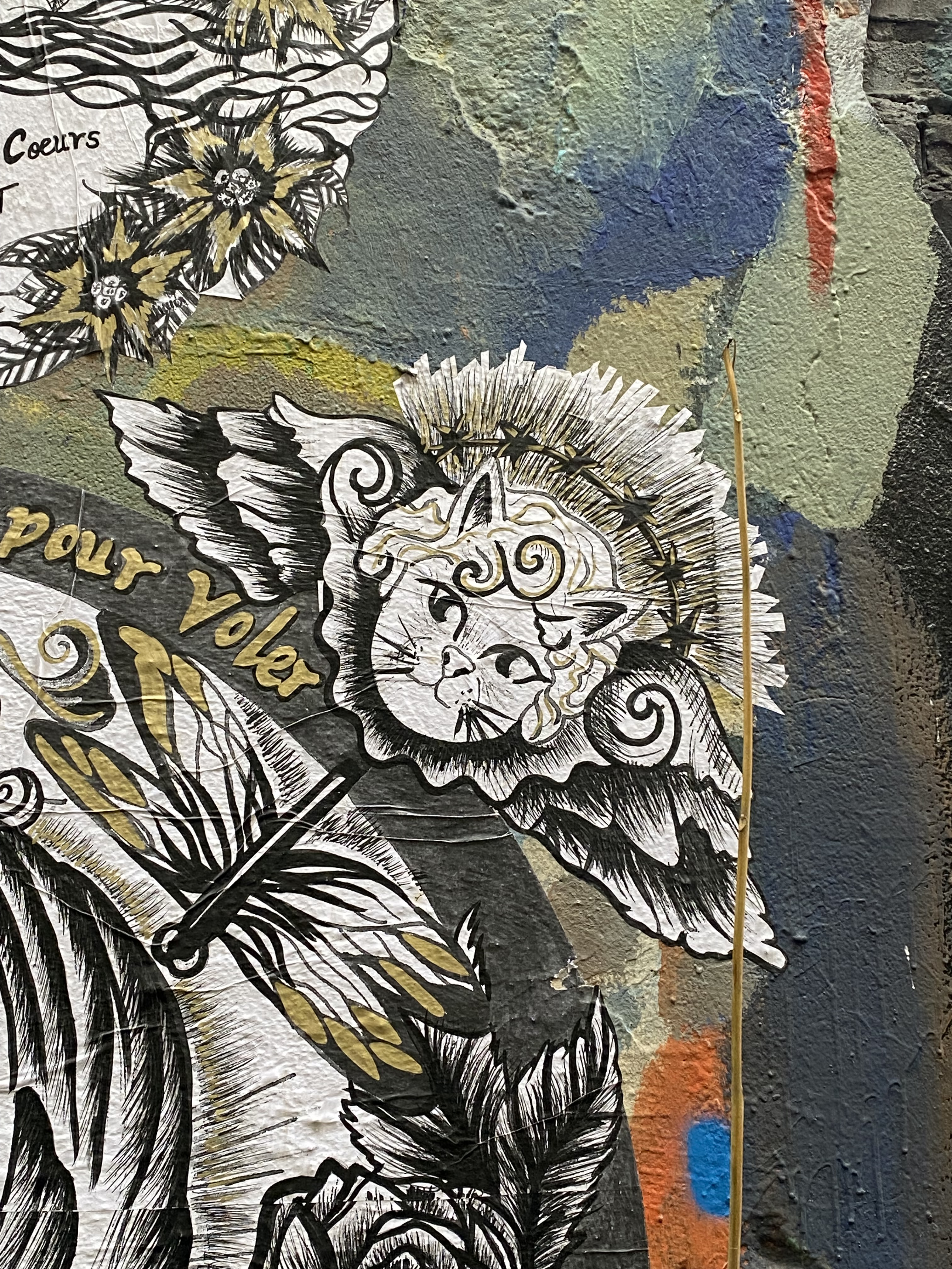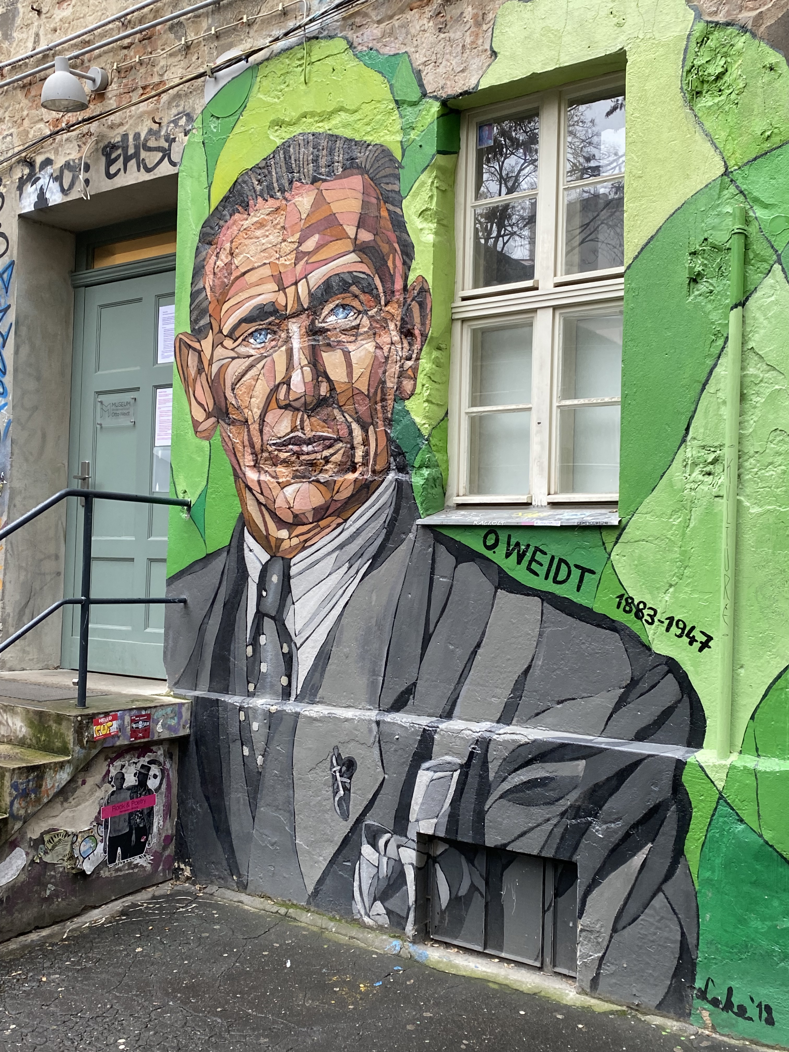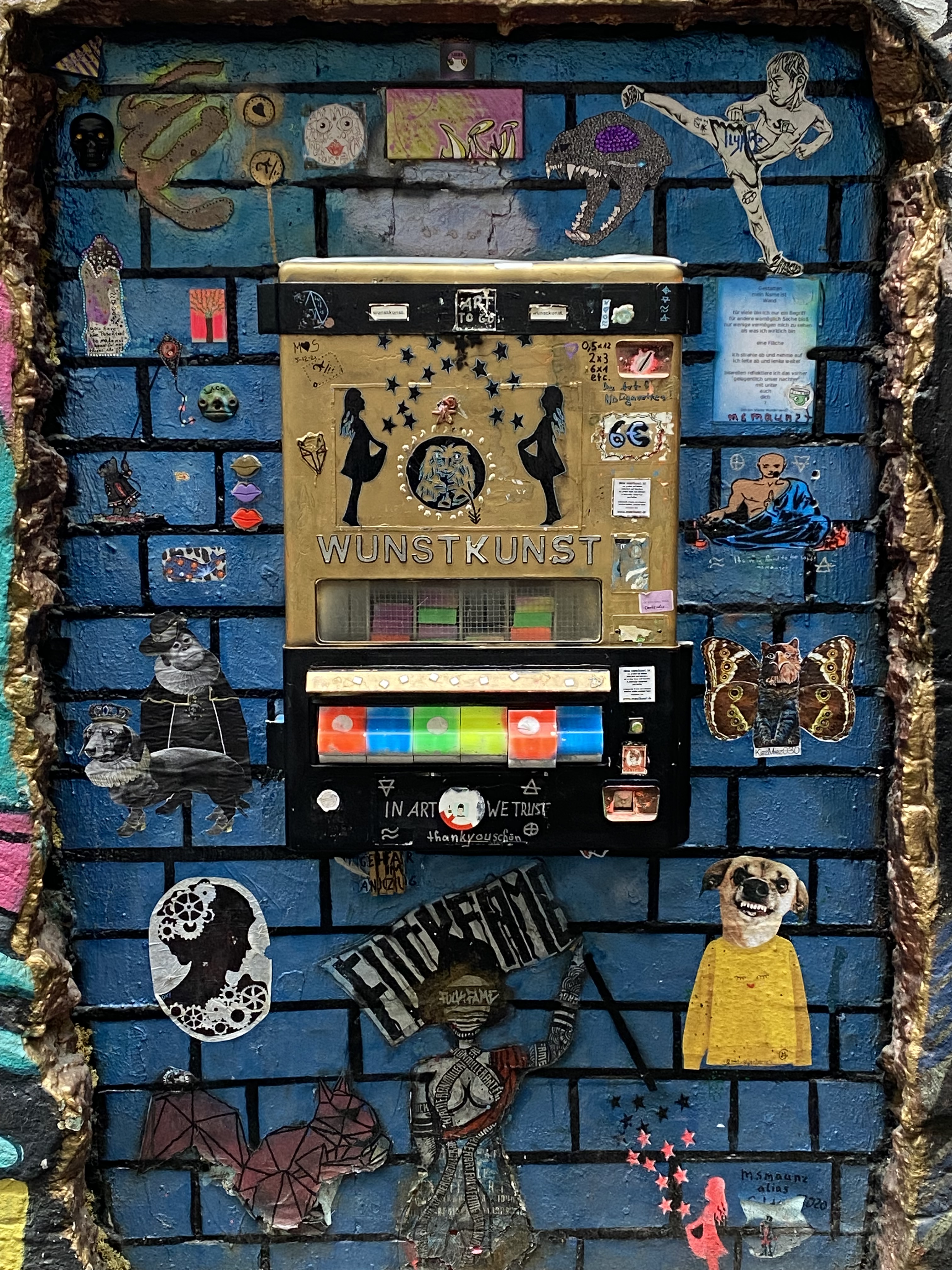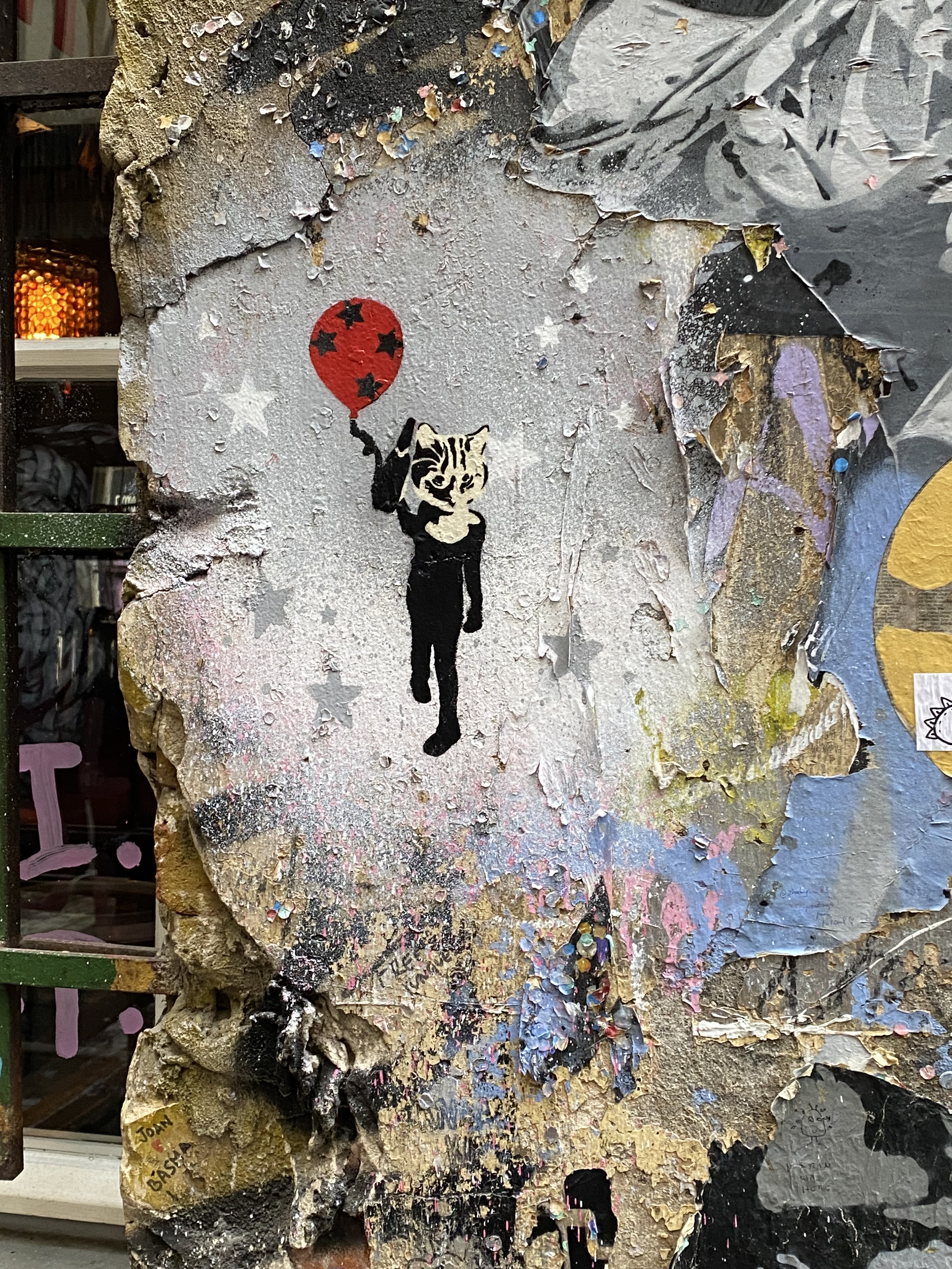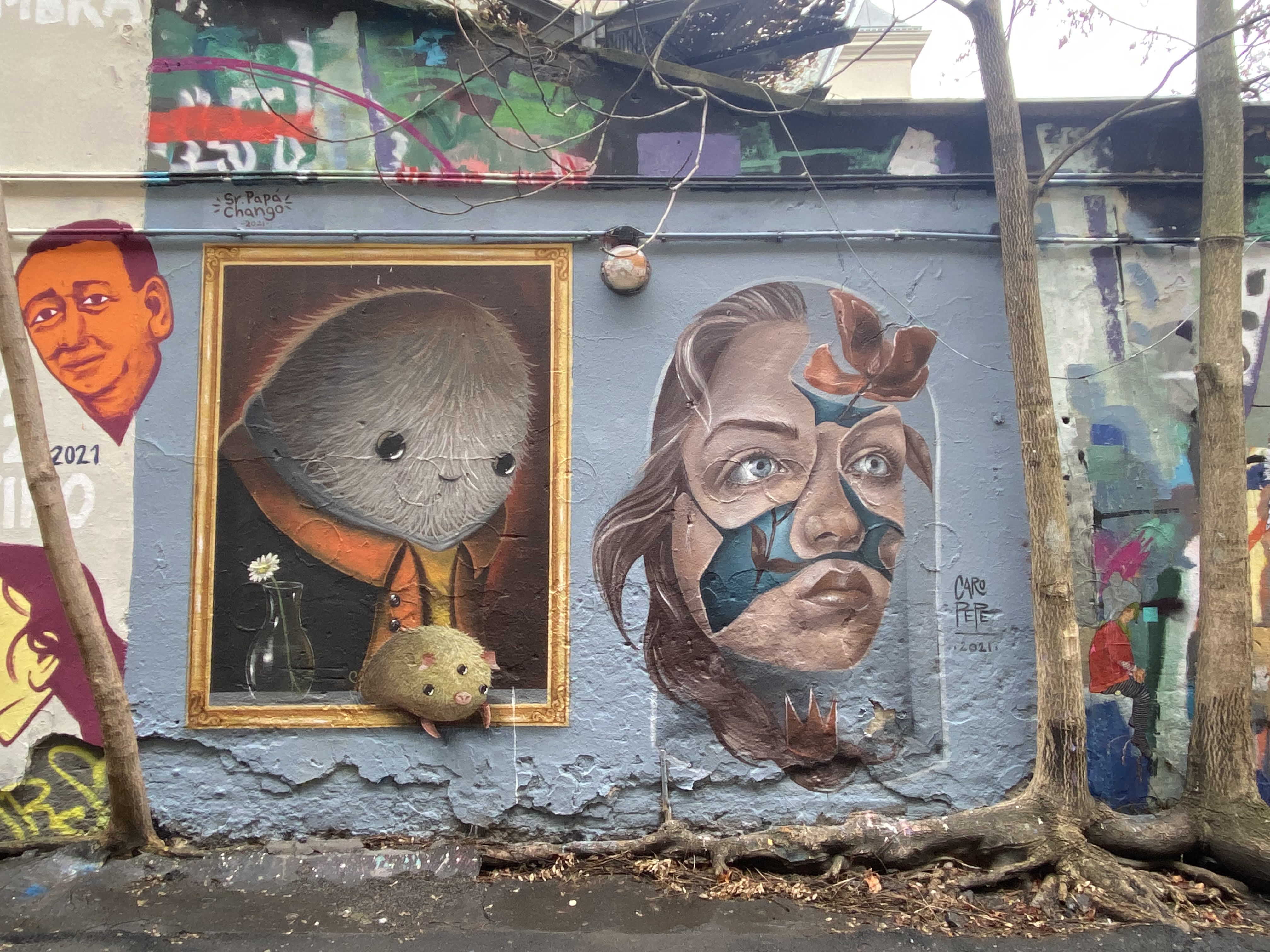 The large walls feature artwork from street artists from all over the world. Works include big paintings, stickers, Paste-Ups, Cut-Outs, stencils, mosaics, installations, guerilla knittings… At the moment you can find works there from international street artists such as: James Cobran aka Jimmy C., Alice Pasquini aka AliCé, Caro Pepe, Otto Schade, The Weird, Reka, Descreet, Alias, El Bocho, Sr. Papá Chango, Plotbon KEN, Tona, Patera, Emess, Herr von Bias (HRvB), Prost, Joy Foc, Robi the Dog, Various & Gould, Soon, Mymo, Rallitox, Lake Oner…