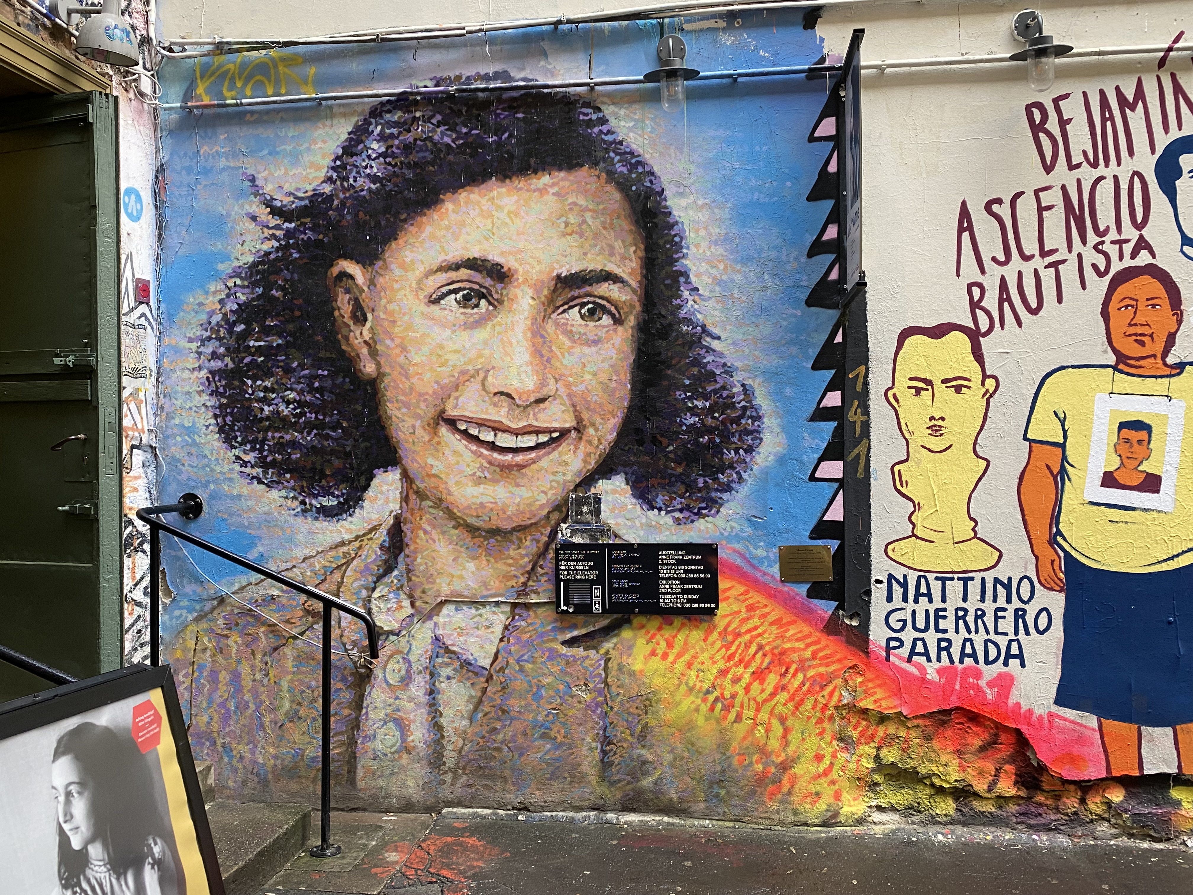 In cooperation with, Street Art Berlin and Street Art London, Jimmy C. painted a mural of Anne Frank right next to the extrance of the Zentrum.
